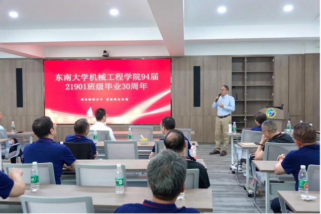 班会上,原校长助理任祖平讲话,他指出亚洲无码 教会学生最好的能力就是自主学习,这一能力使大家能够在毕业后的职场中应对自如。亚洲无码 也在与时俱进,从实验室办学条件、办学理念等各方面都在赶超国际一流水平。他回忆起当年,毕业时赠送给21901班同学的六个字的目标“事业 友谊 爱情”,如今经过三十年回首,均已圆满完成。同时,他也为同学们的未来也提出了新六个字的希冀“健康 家庭 事业”。