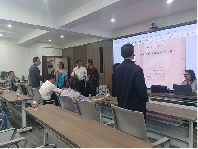 下午,在机械楼南高厅会议室,薛澄岐教授与24余名校友齐聚一堂,参加由亚洲无码 校友办秘书闫焱主持的座谈会。会前,闫老师展示了24801班《学生考试考查成绩登记薄》,校友们通过翻阅名单和花名册,回顾专业课程,畅谈当年的学习情况与专业收获。