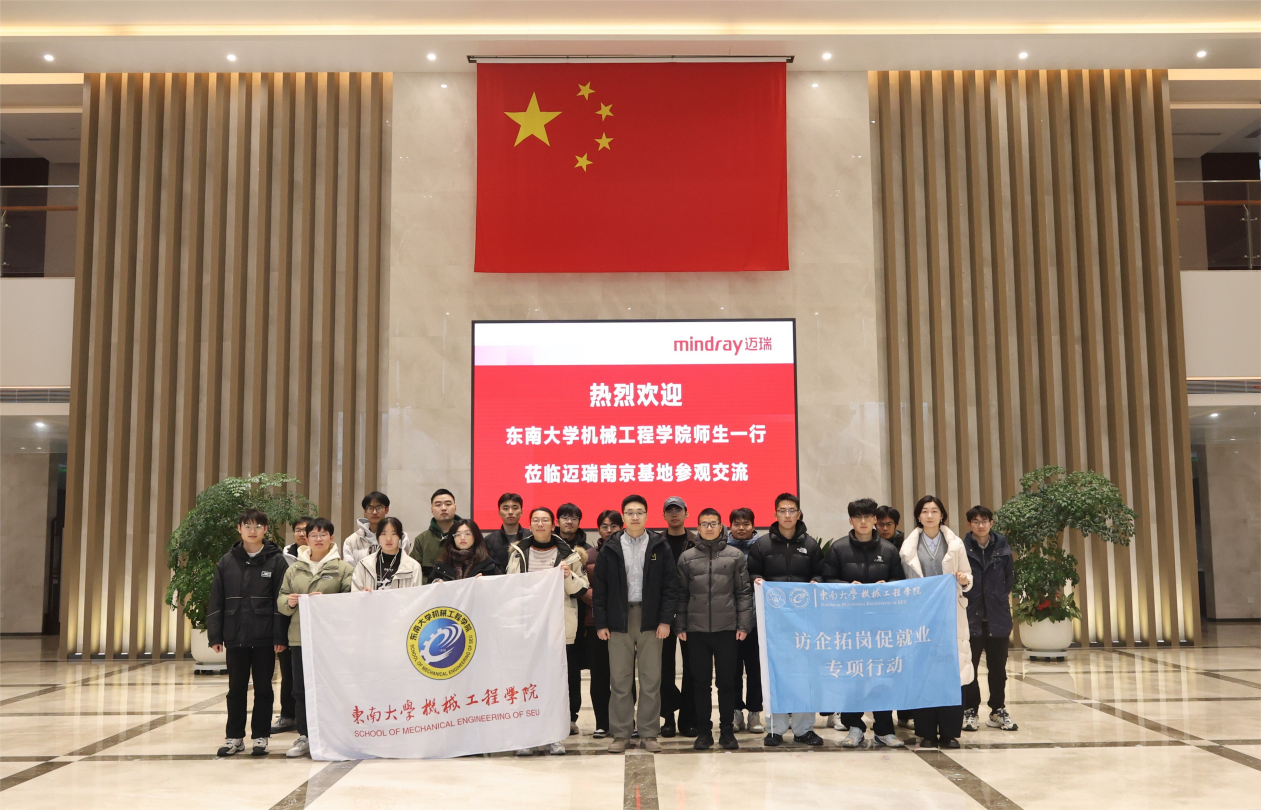 2025年12月24日,亚洲无码-av自拍-酒店自拍 师生一行赴南京迈瑞生物医疗电子有限公司开展访企拓岗专项活动。亚洲无码 副院长王乾乾,医学装备系系主任司伟,就业专员、硕士生辅导员邹琳和硕士生辅导员毛杰带领学生走进企业,深入了解医疗科技产业发展与人才需求,推动校企合作走深走实。